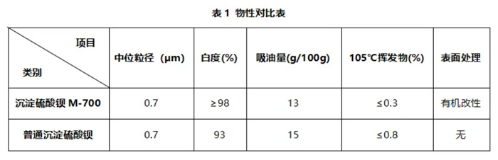 沉淀硫酸鋇:M-700,粒徑0.7μm,云浮鴻志新材料有限公司;
